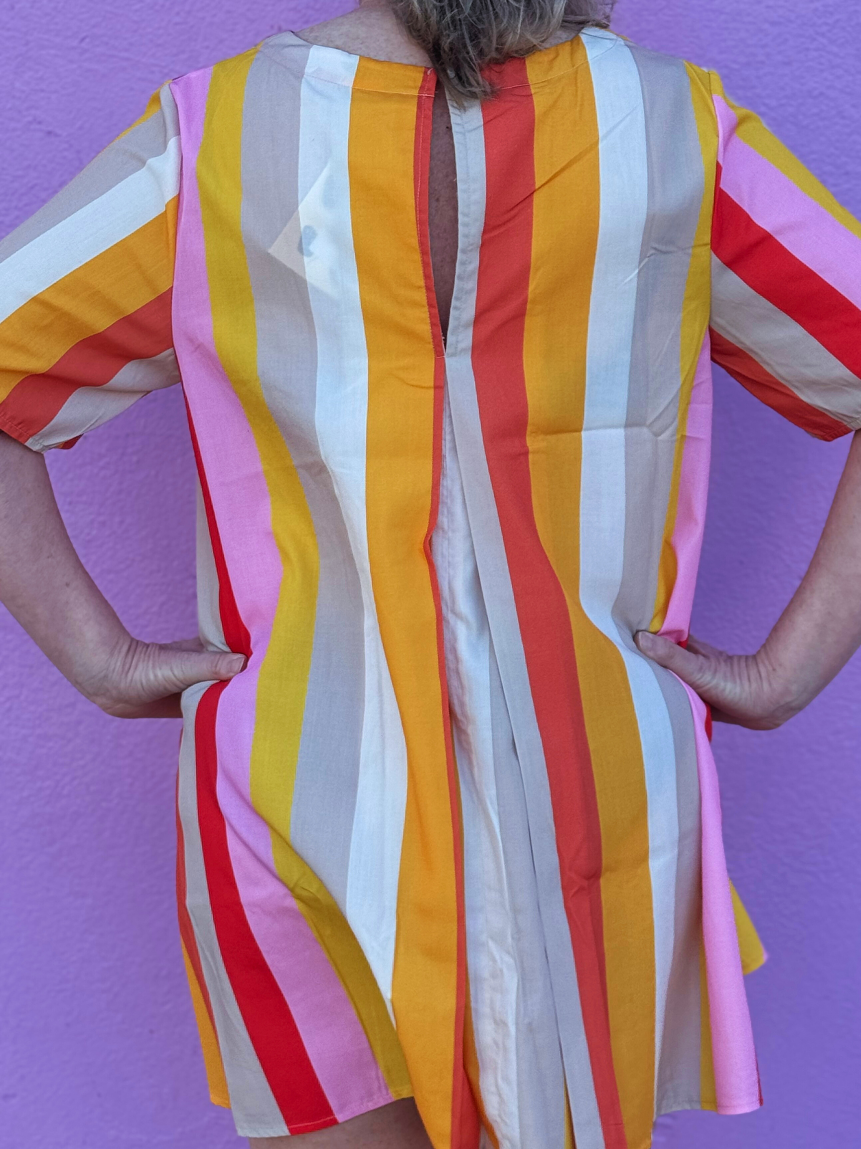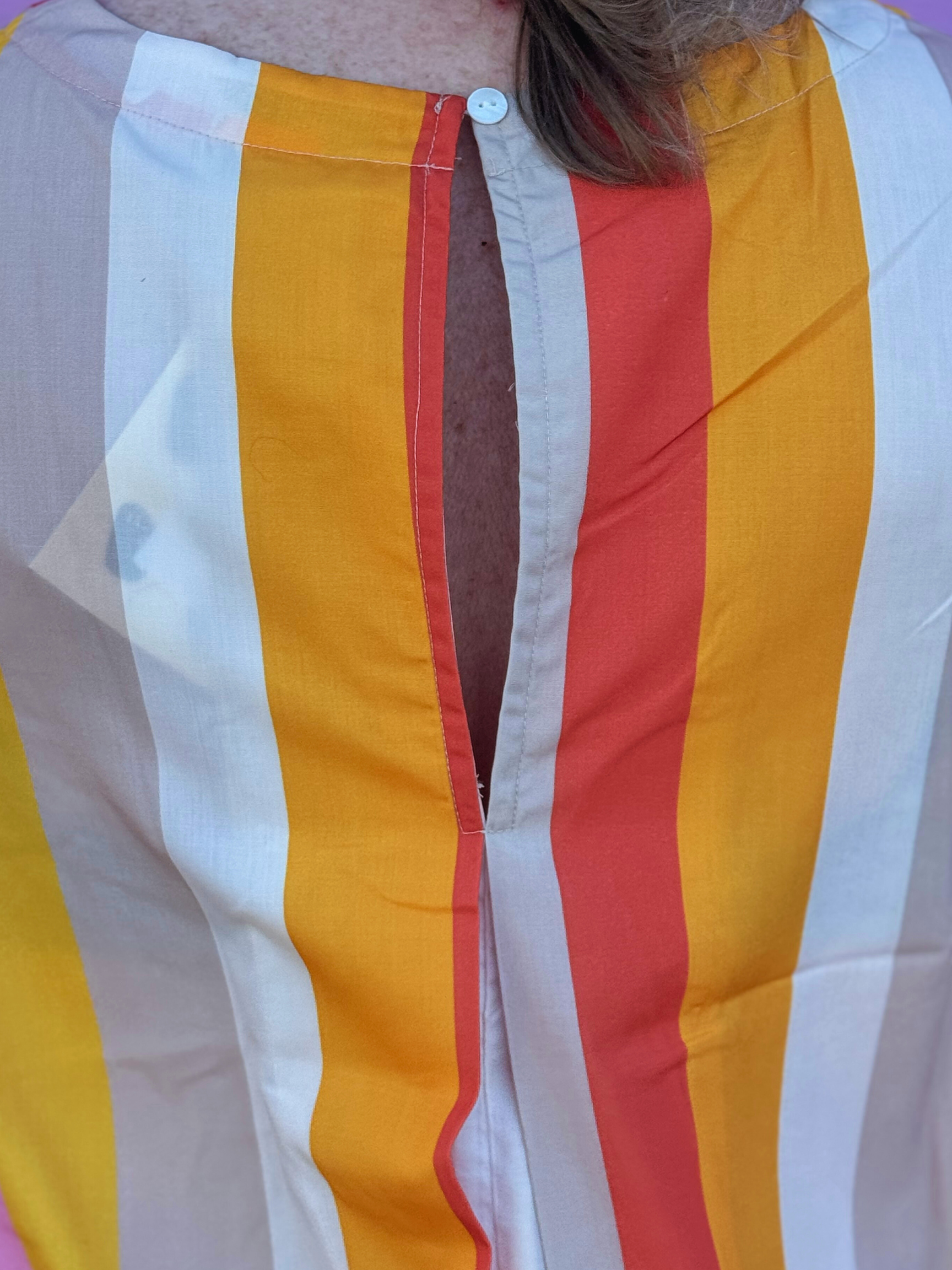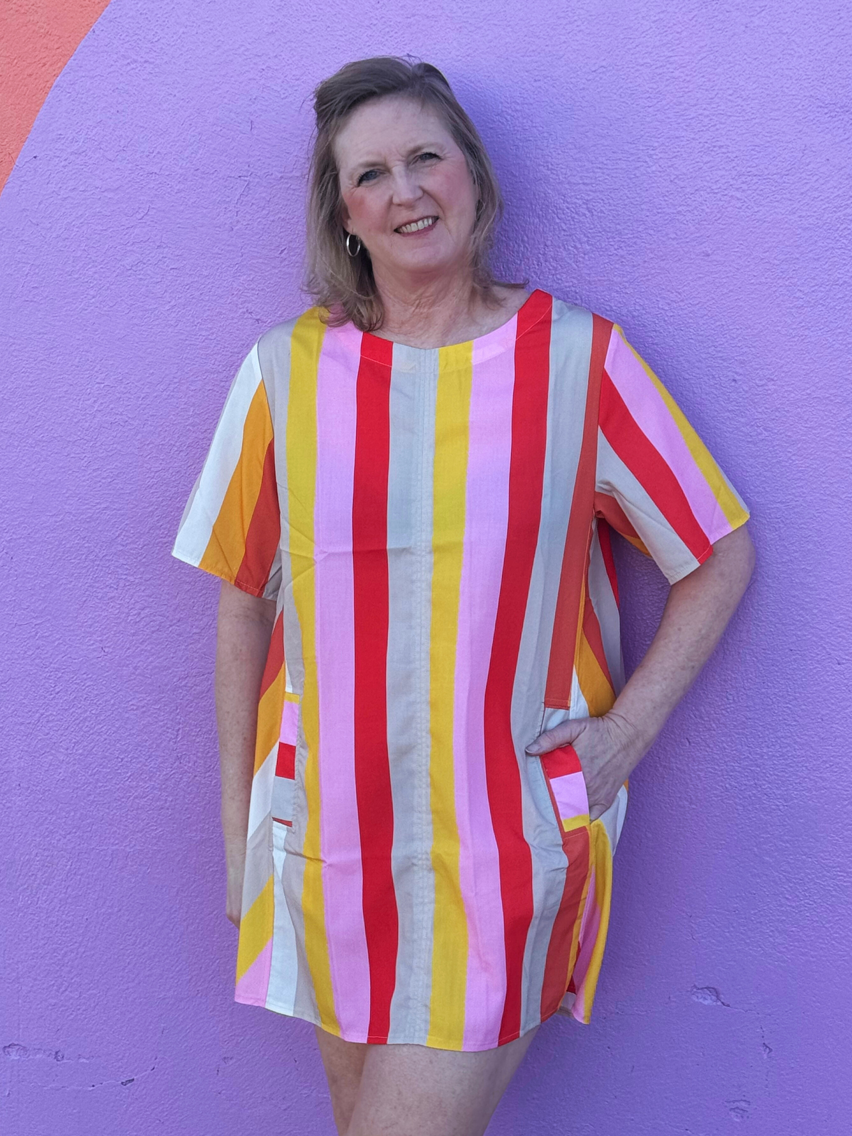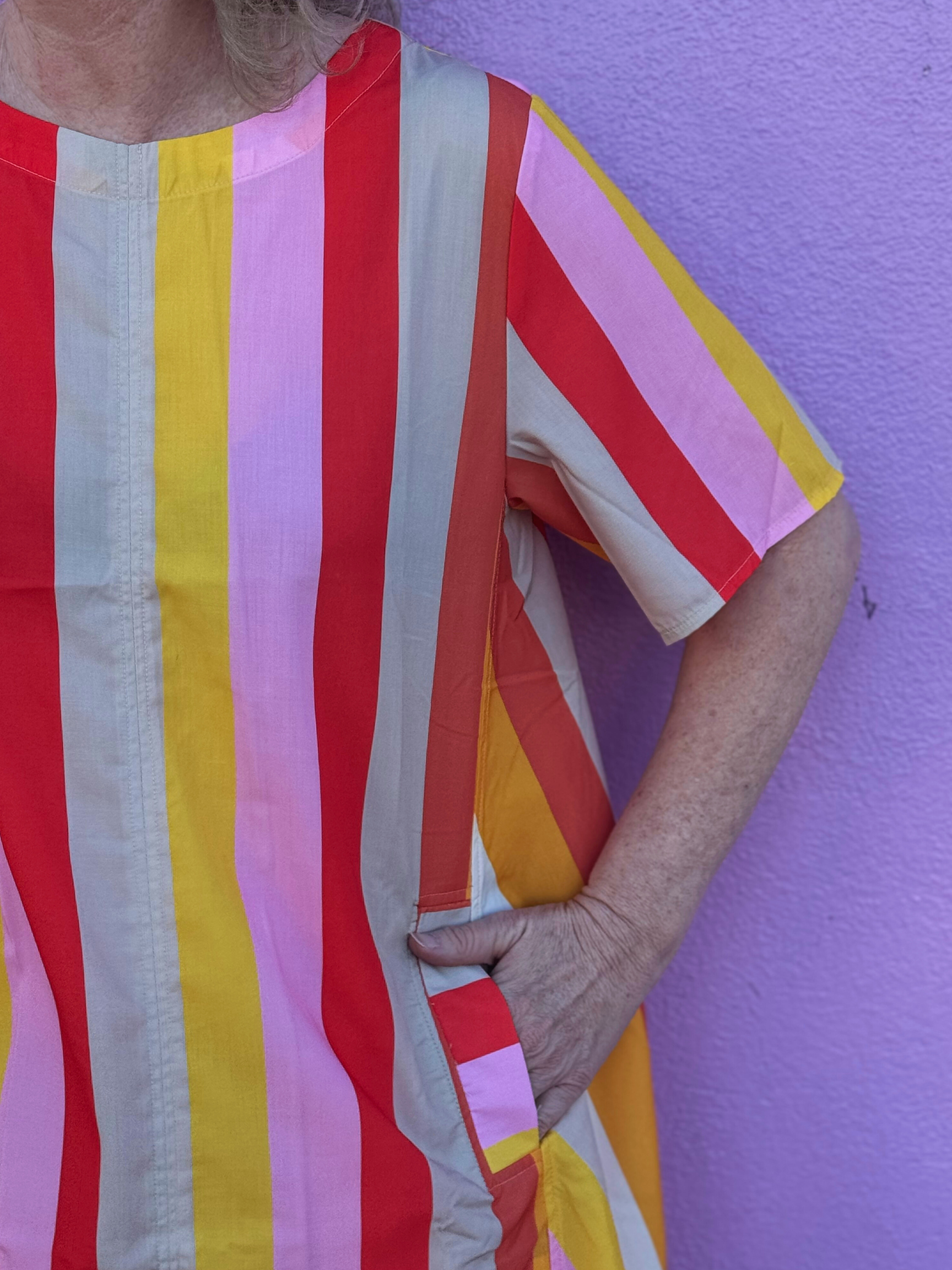 Multi Stripe Woven Side Pocket Flared Midi Dress