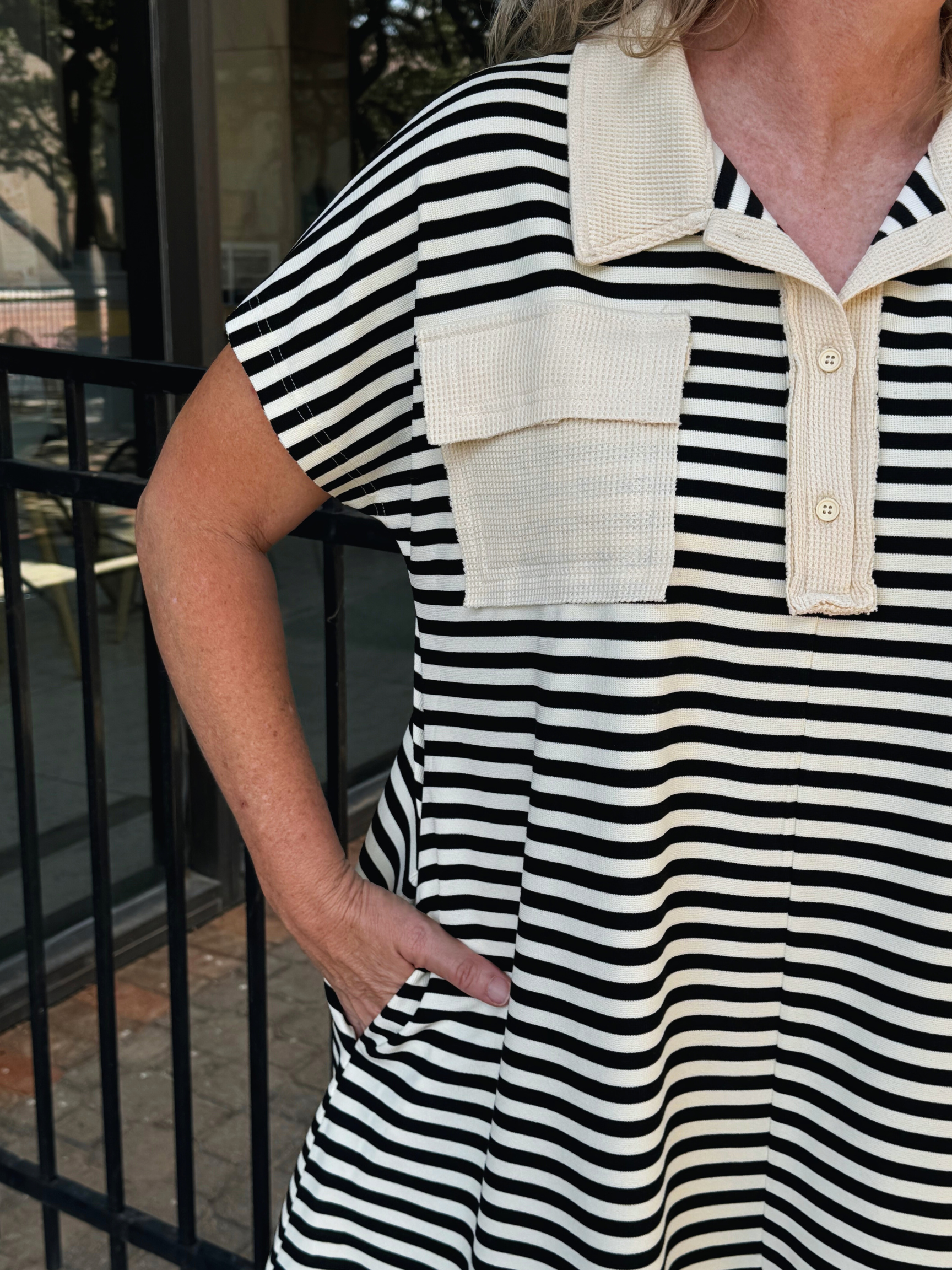 -Contrast Collar & Pocket Detail