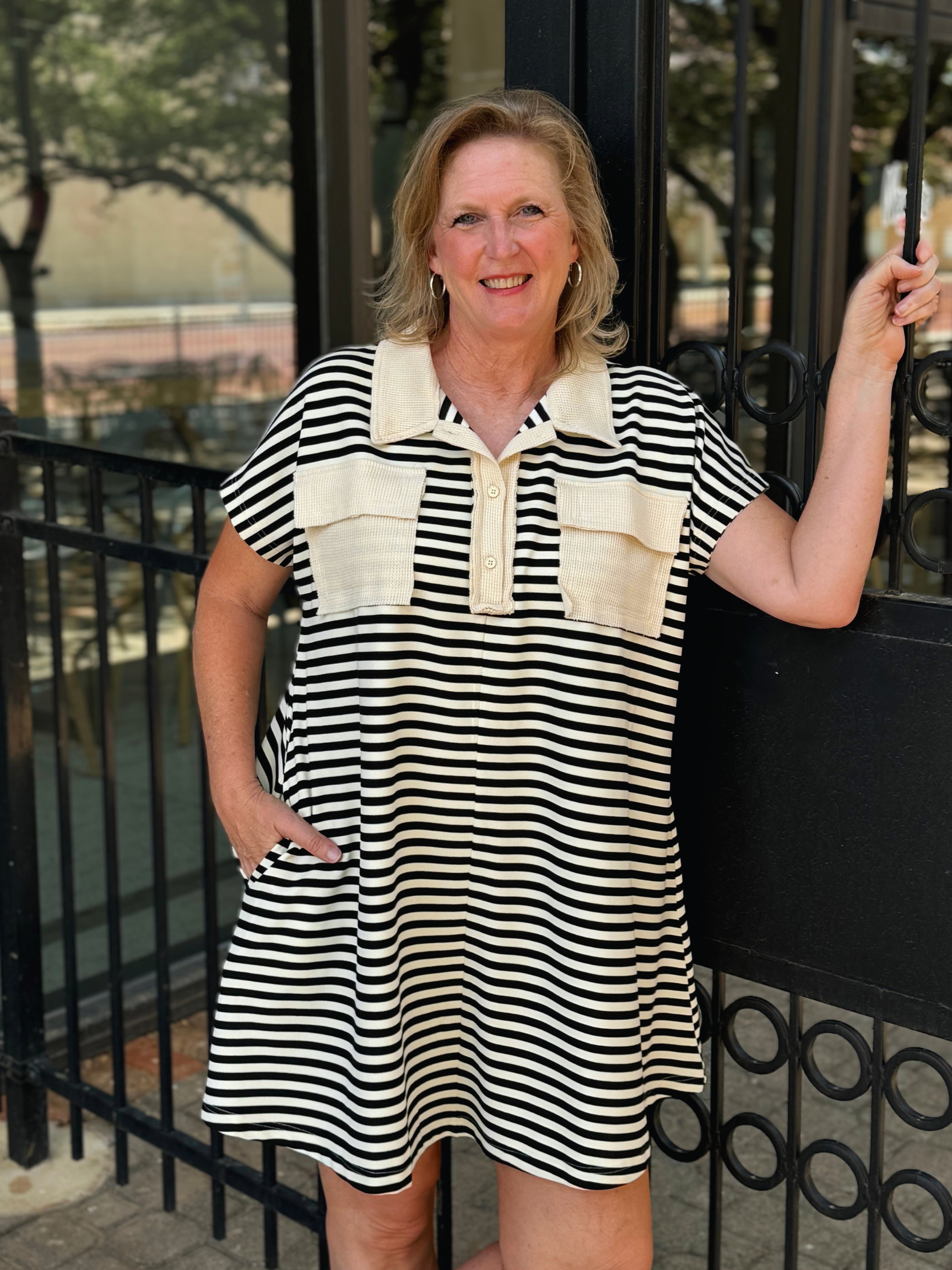 Striped Short Dolman Sleeve Knit Polo Dress