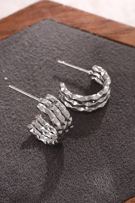 18K Stainless Steel Waterproof Tarnish-Free Hammered Huggie Hoop Earrings, Made from high-quality stainless steel with a luxurious 18K gold finish, these earrings feature a stunning hammered texture that adds depth and dimension to your look.