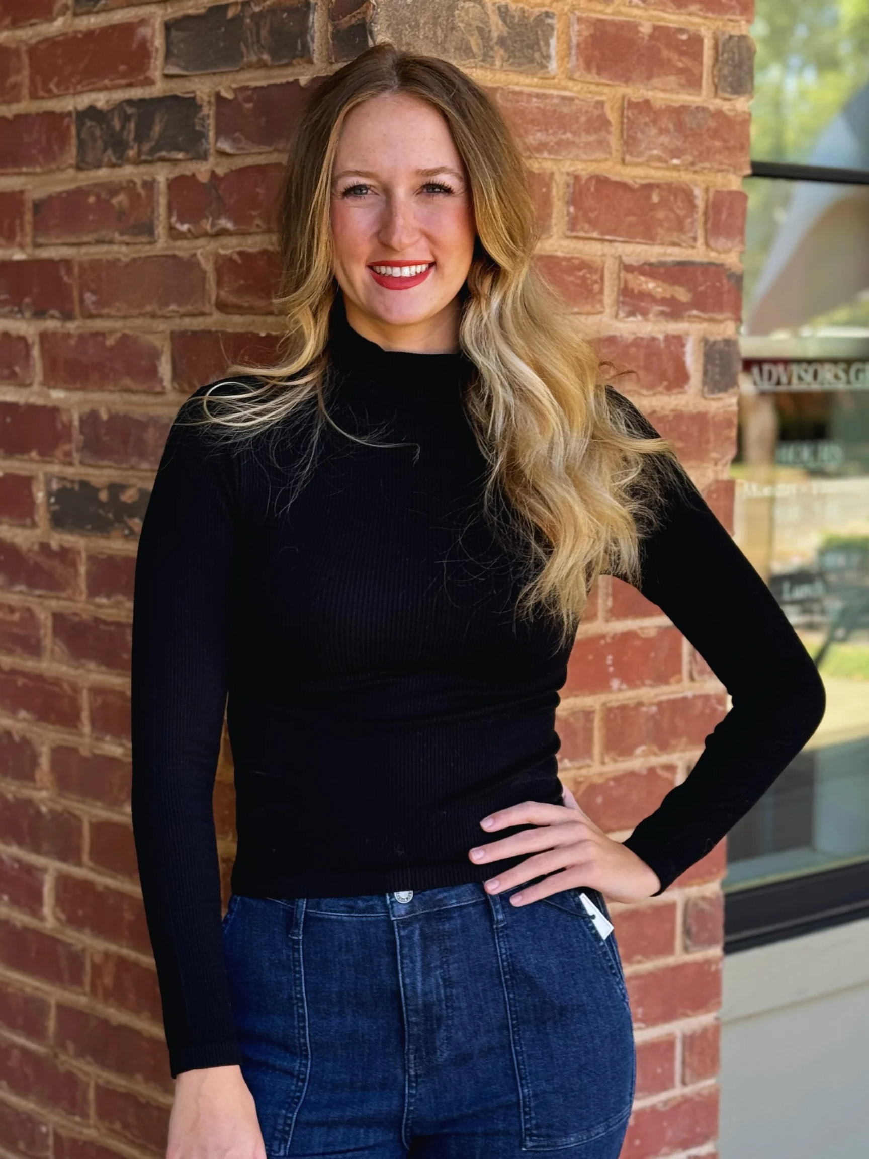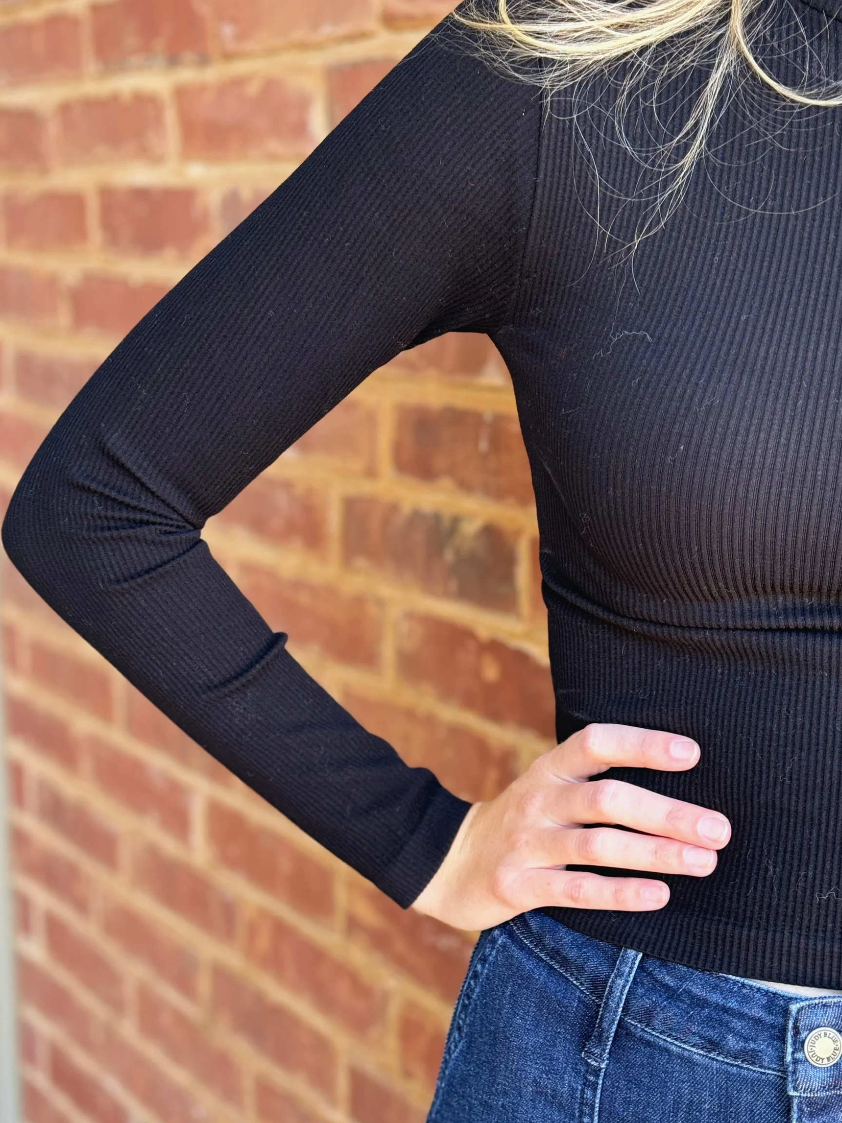 Seamless Ribbed Long Sleeve Mock Neck Top