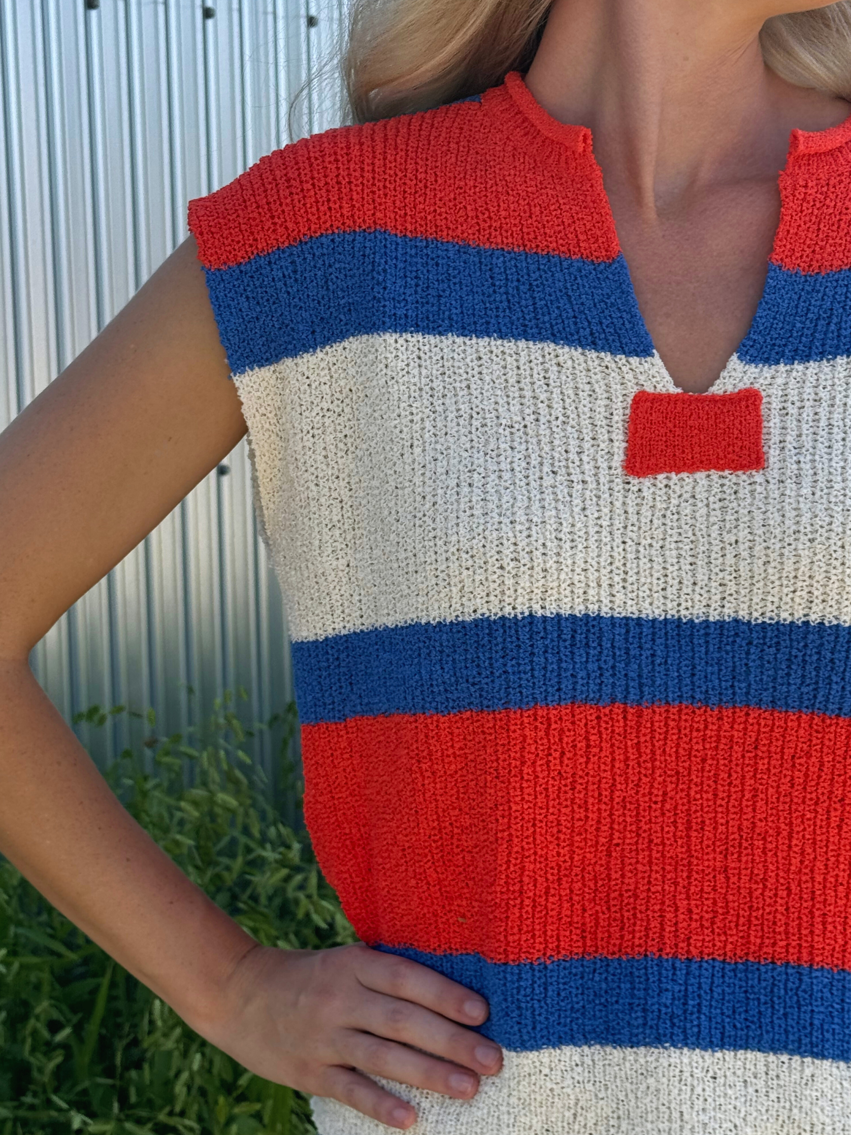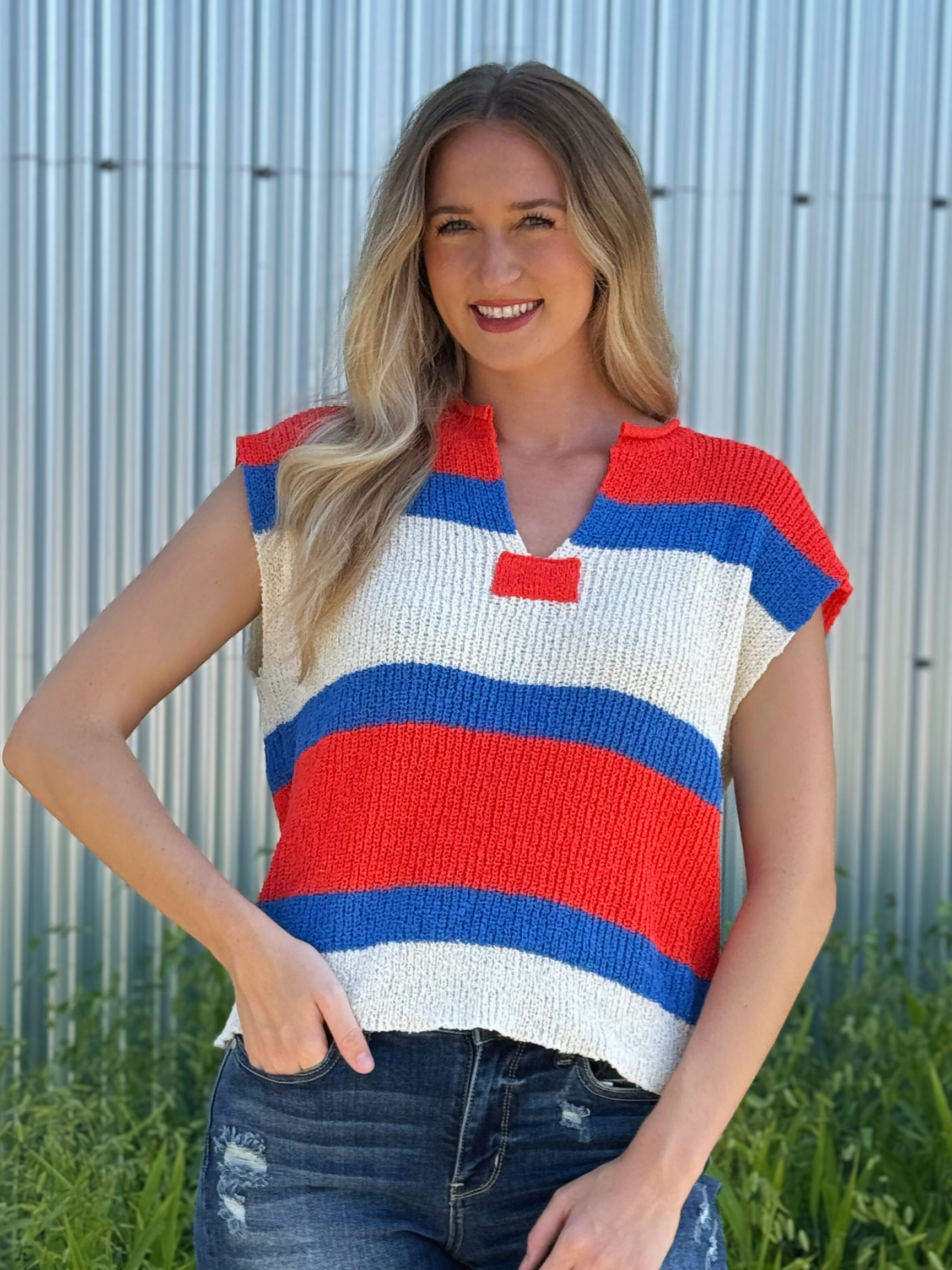 Striped Color Block V Neckline Sleeveless Top