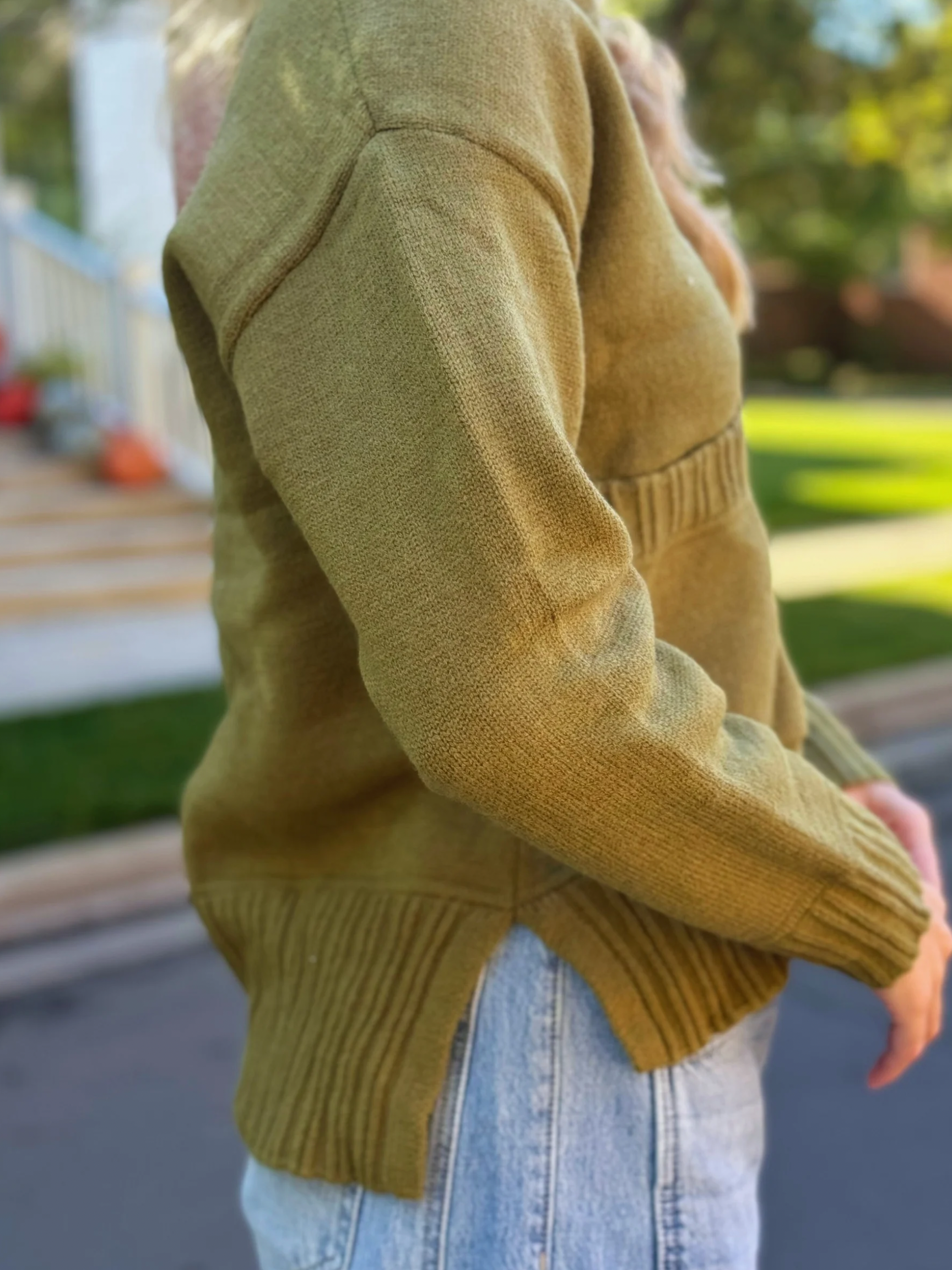 Flap Collar Knit Crop Pullover with Pouch Pockets