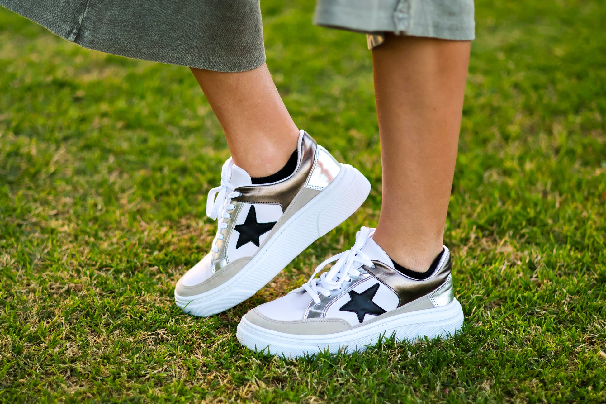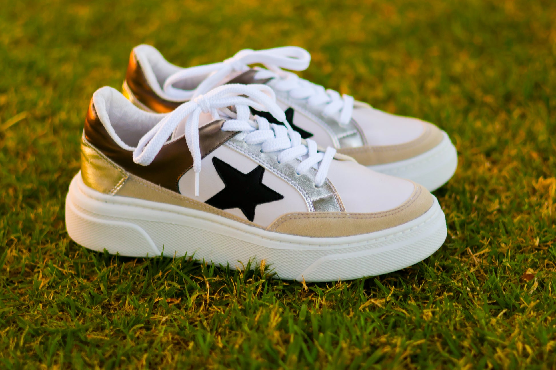 Don't miss out on these cute sneakers! Comfortable and trendy. Lace up style, Round toe.