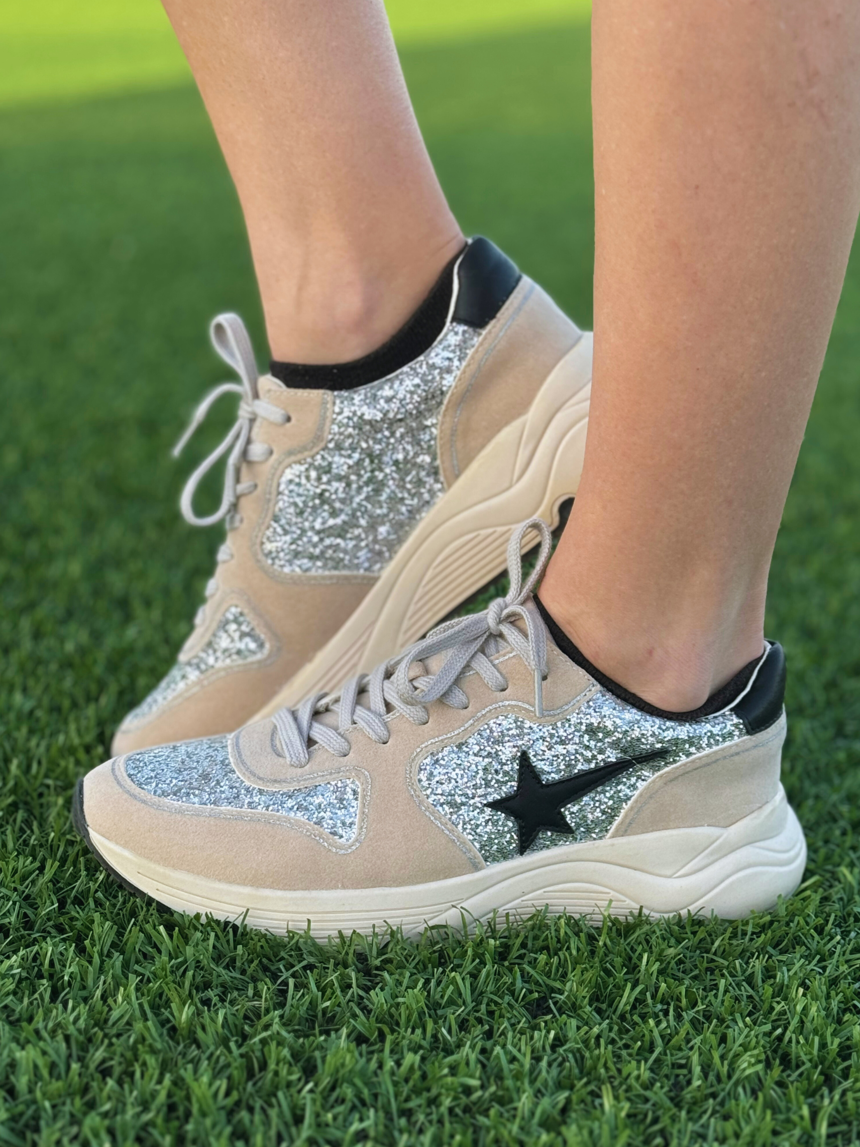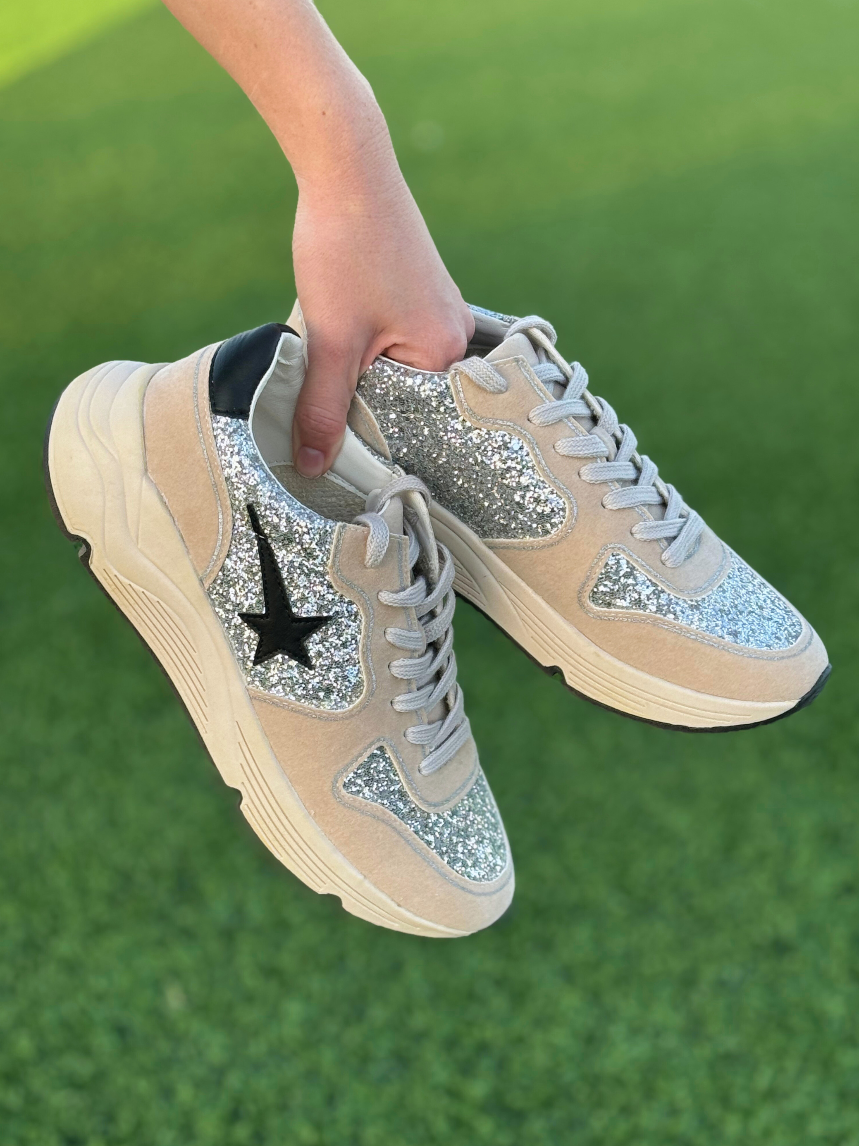 Elevate your sneaker collection with the Melissa - Popstar Glitter Suede Sneakers. Ideal for those who want to shine, these sneakers feature a standout black star design on plush suede. Combining a bold aesthetic with ethical and sustainable production, these sneakers are designed to make a statement. Enjoy the signature soft footbed that ensures all-day comfort, perfect for enhancing your street style with a splash of color and glitter. Embrace the bold and stylish with these eye-catching sneakers.
