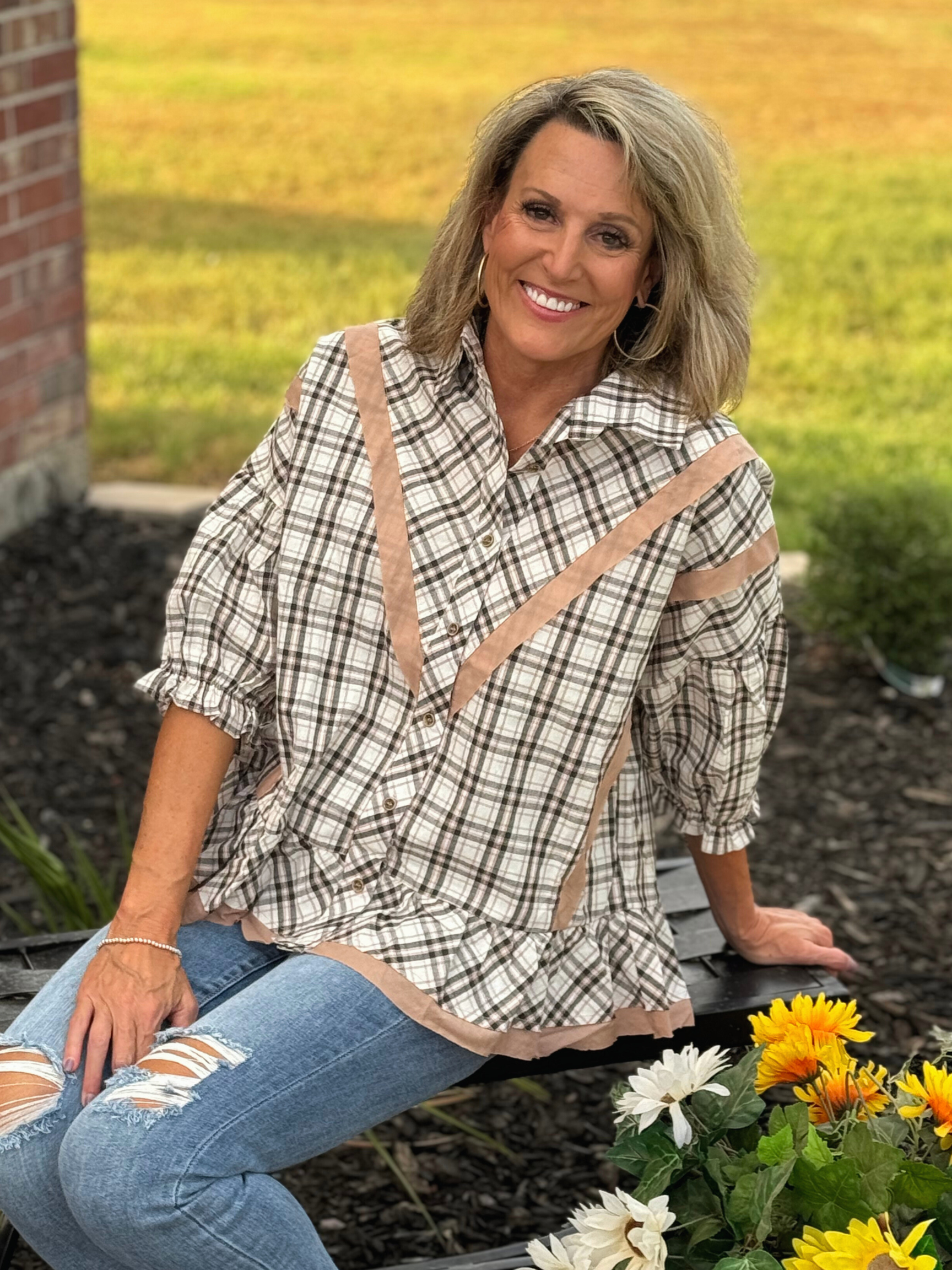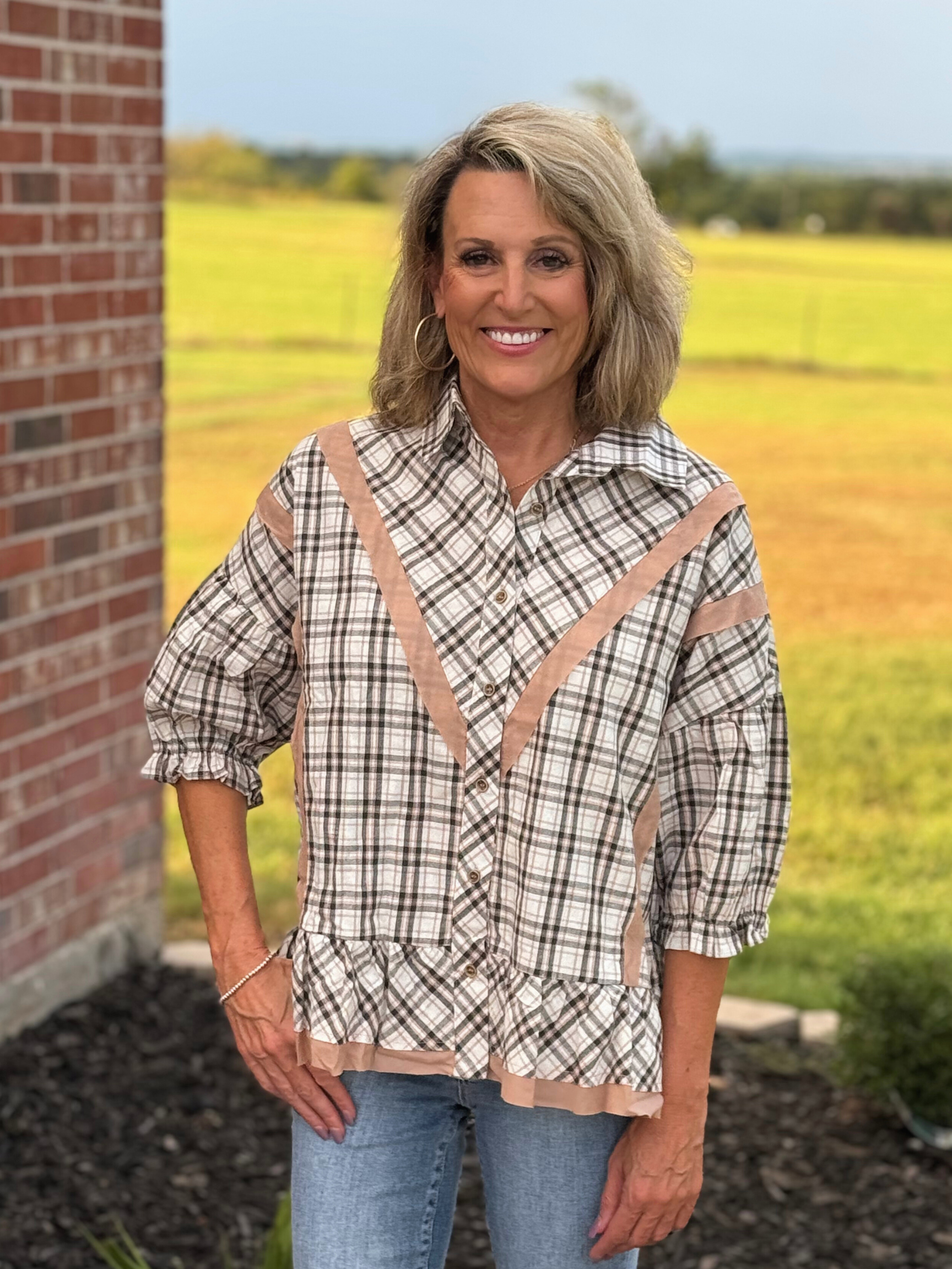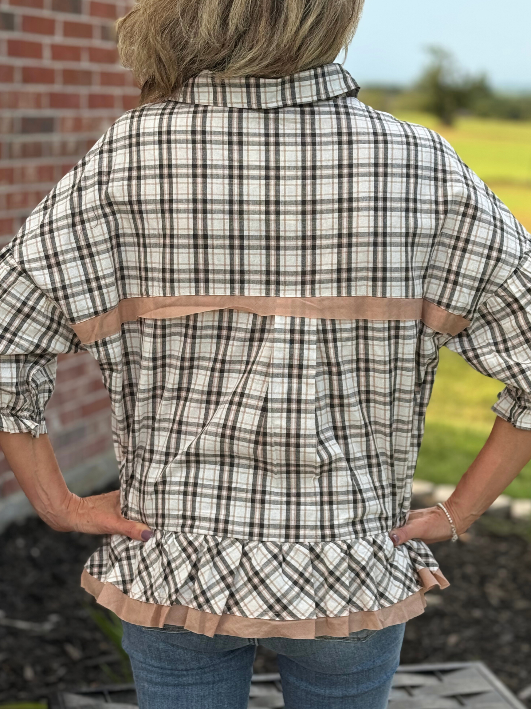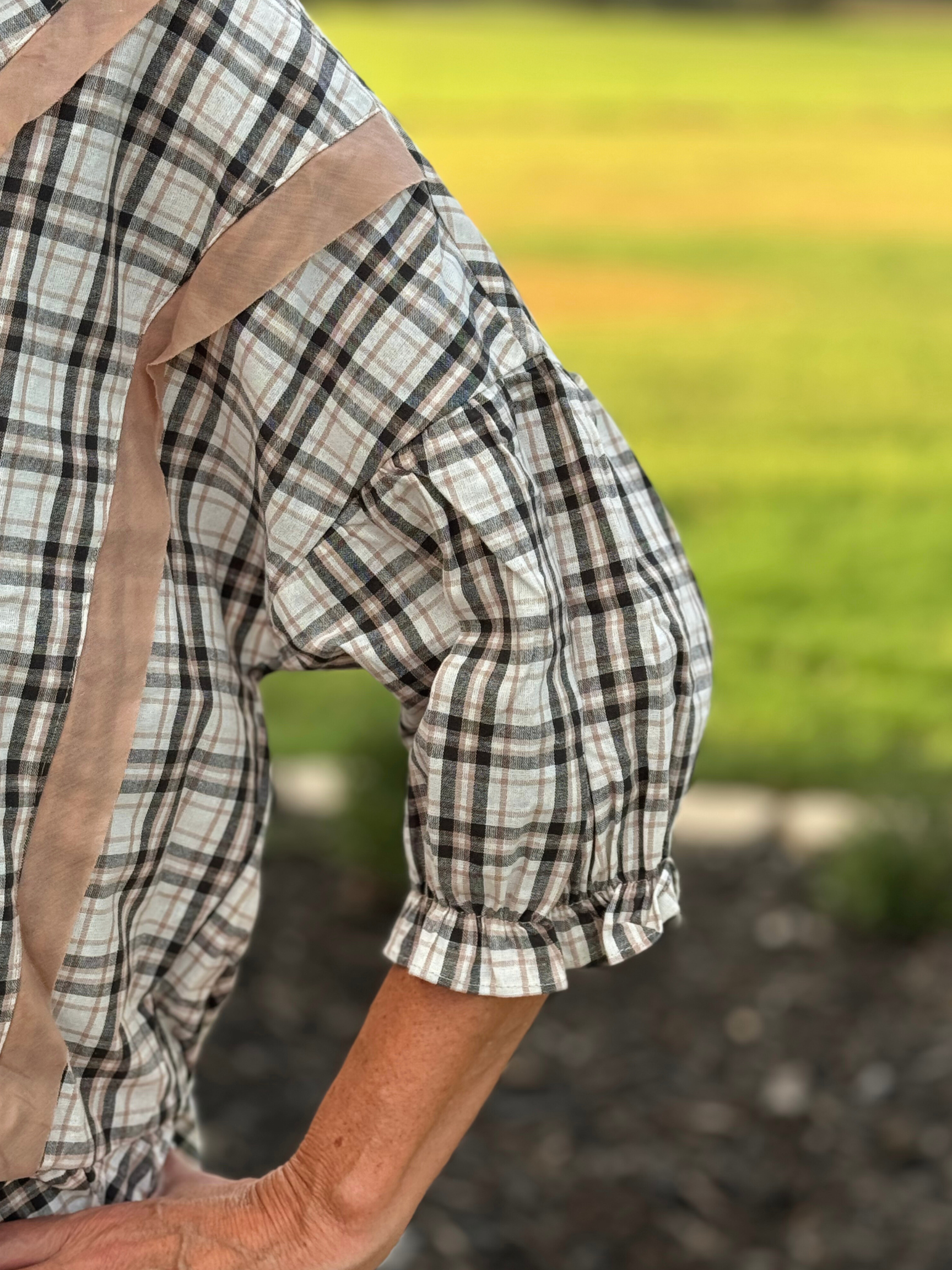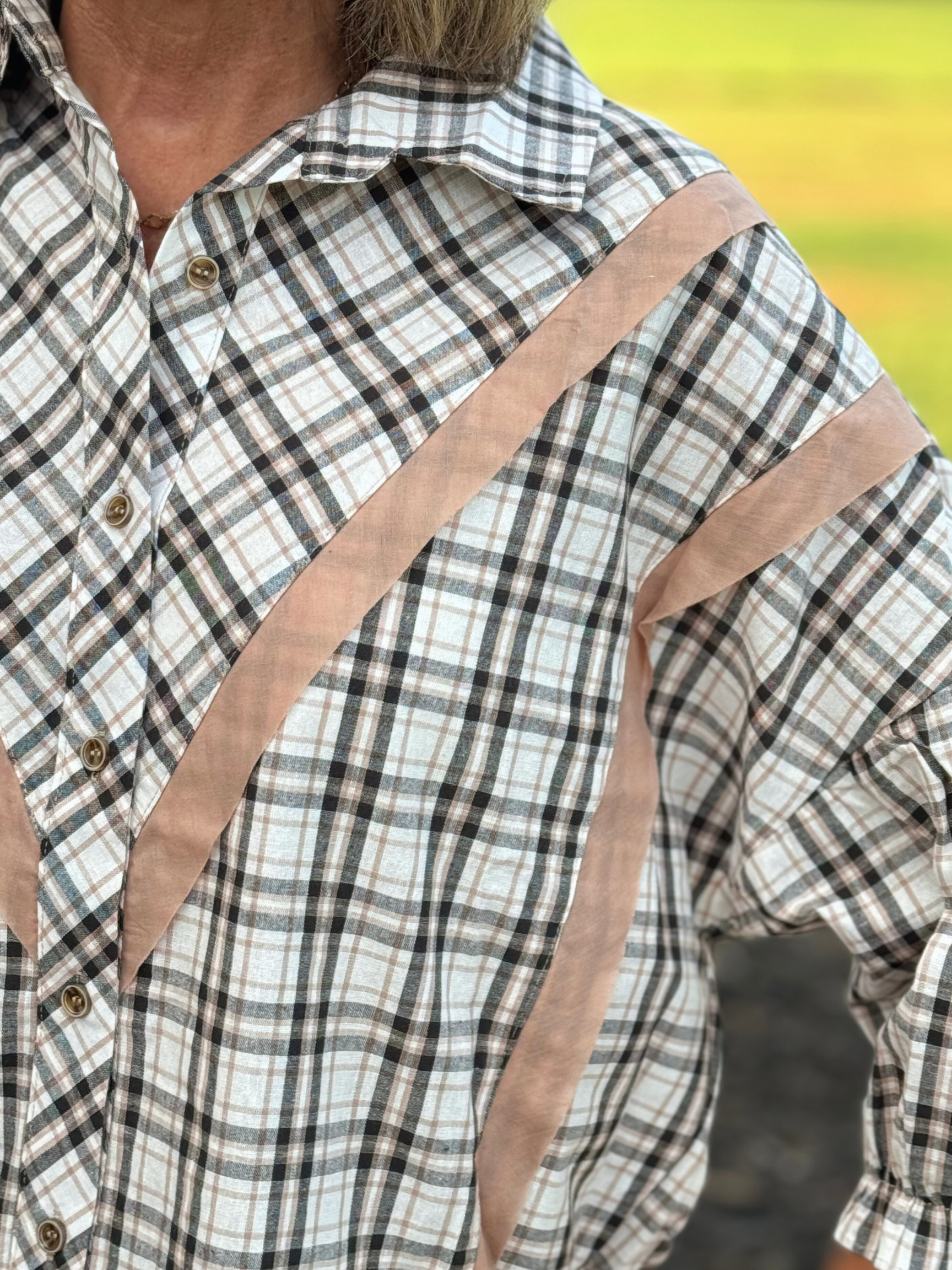 Cotton Plaid Contrast Detailed Top