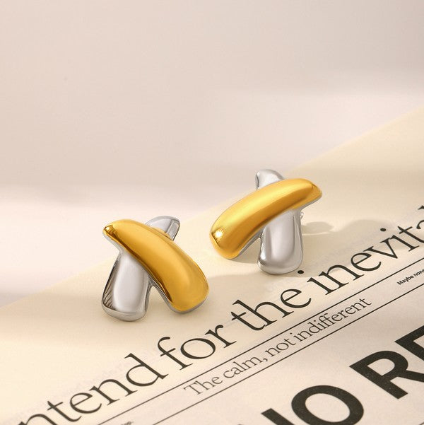 Two Tone Duo Tone Real Gold Dipped Cross Stud Earrings